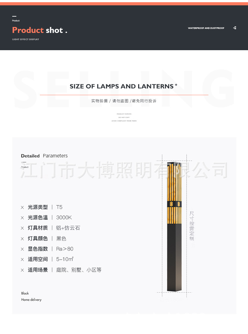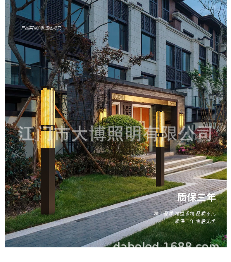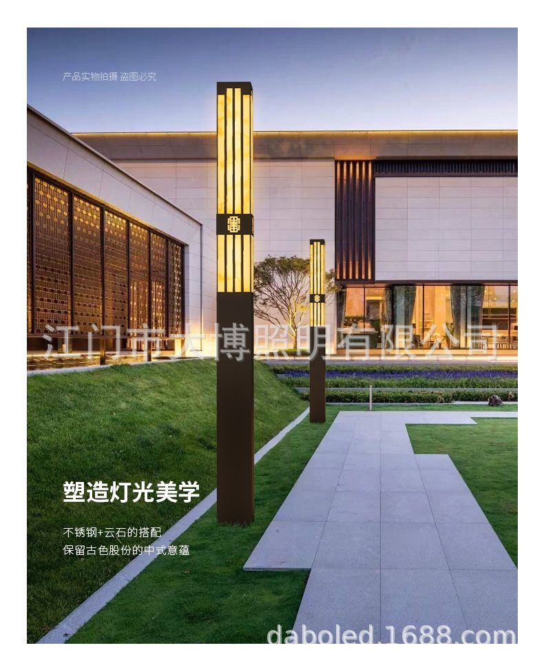 新中式方形景觀燈LED庭院燈特色拉絲電鍍不銹鋼景觀燈柱廠家批發