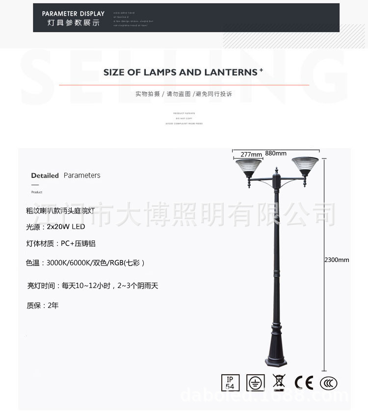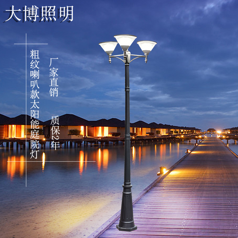 太陽能庭院燈粗條紋喇叭款小區園林廣場鋁制歐式景觀庭院燈批發