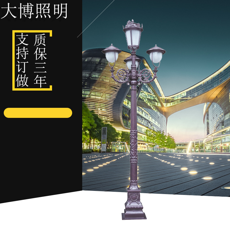led市電路燈壓鑄鋁歐式庭院燈三頭防水古典古銅色小區裝飾照明燈