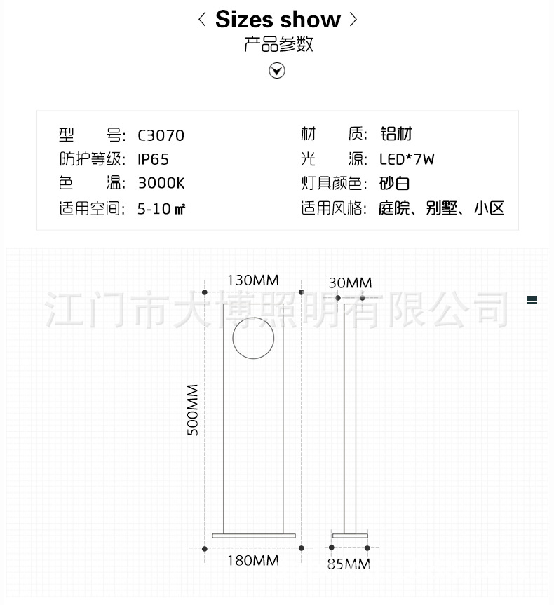 LED草坪燈7W現代特色方形圓心款簡約小區草坪亮化鋁制廠家批發