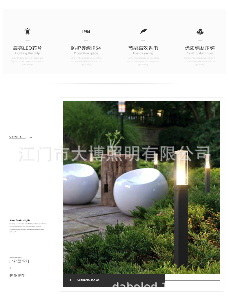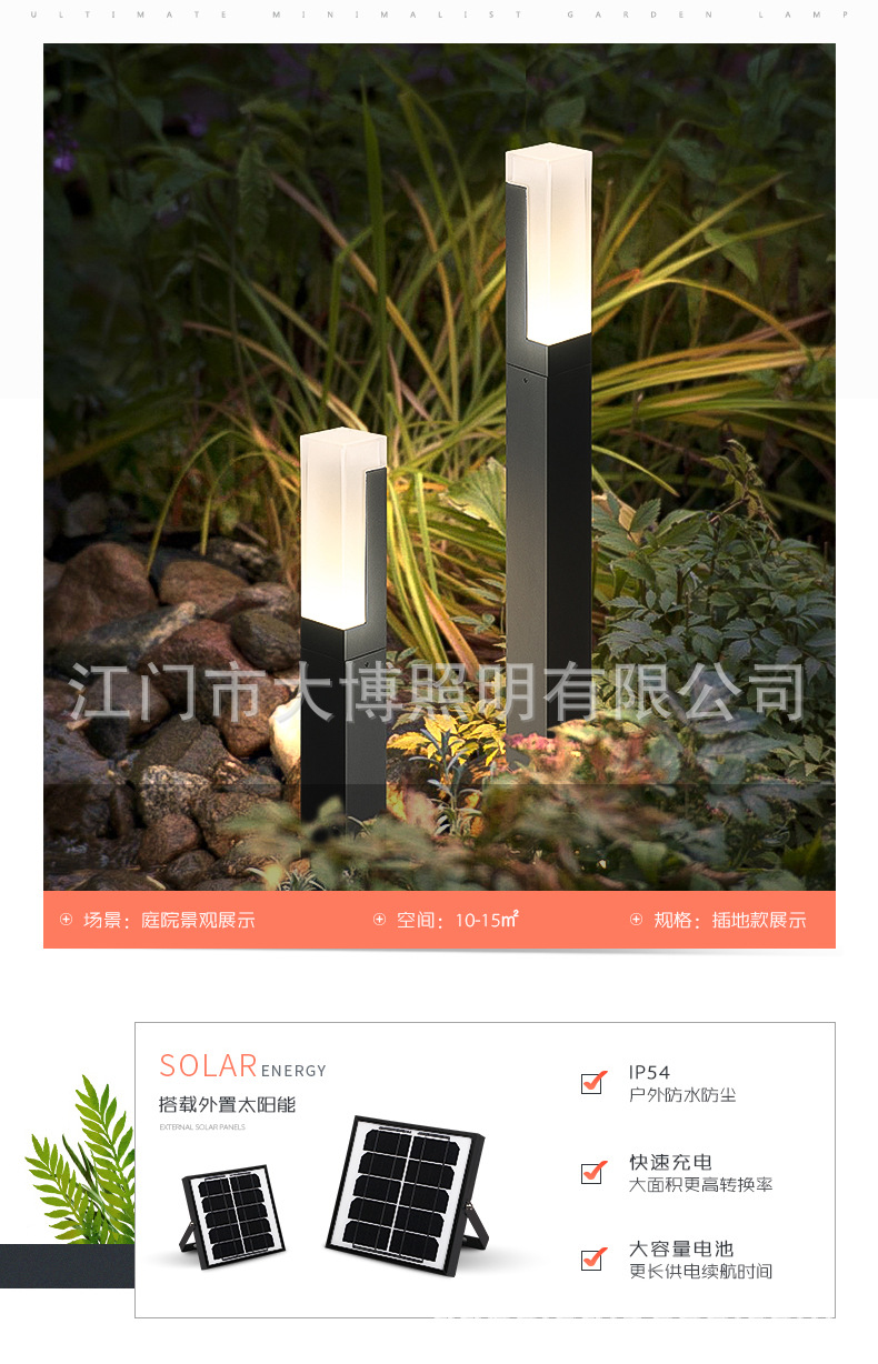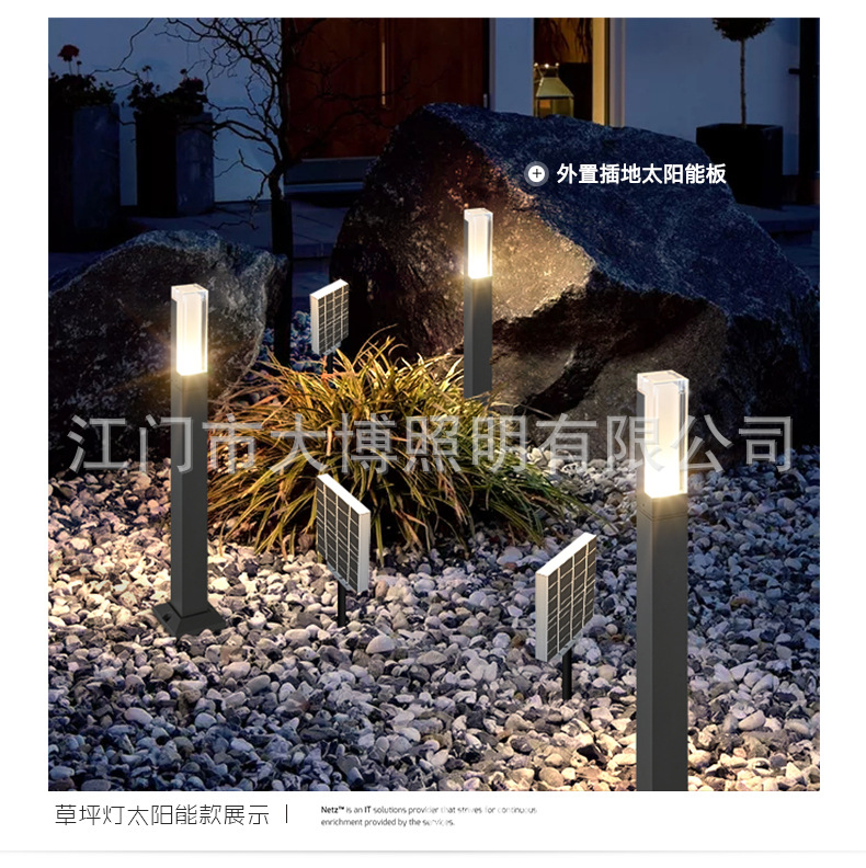 戶外LED太陽能草坪燈公園草地照明亮化現(xiàn)代特色小方柱草坪燈批發(fā)