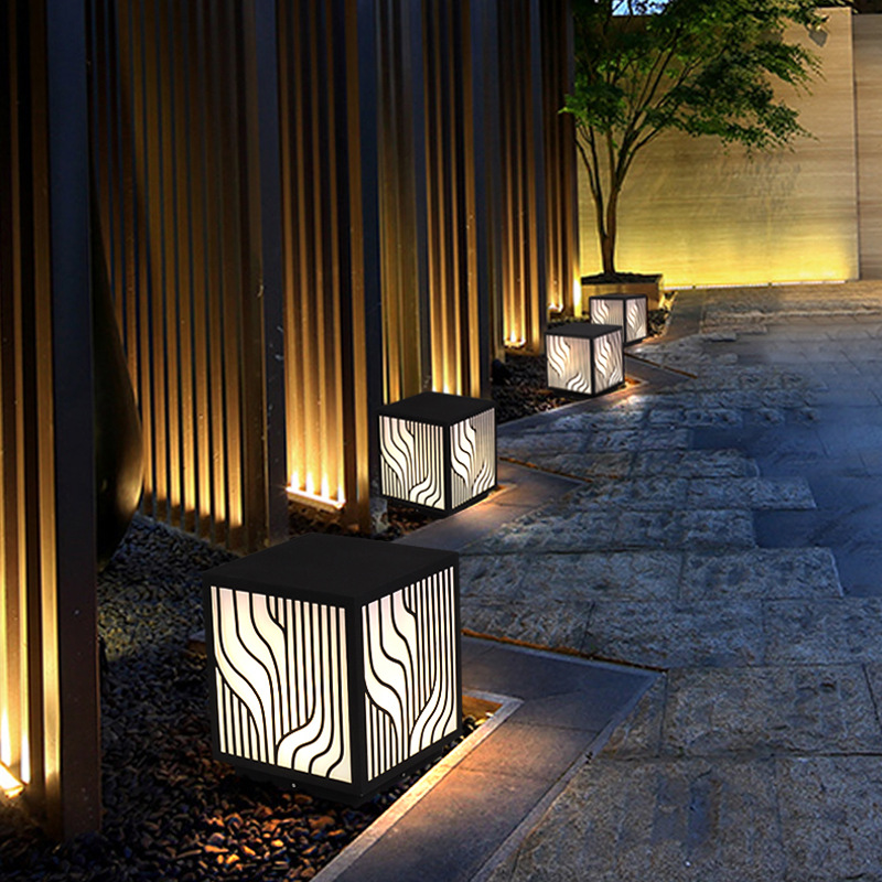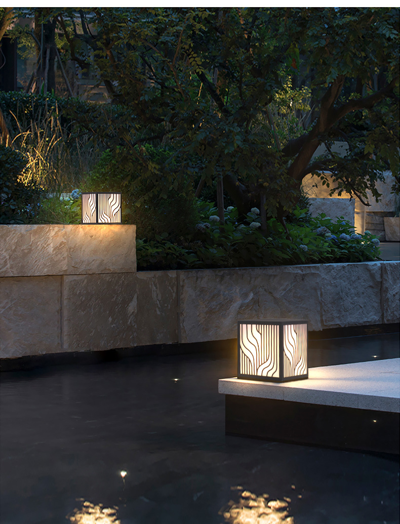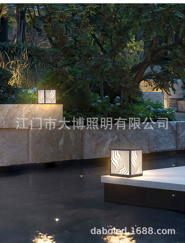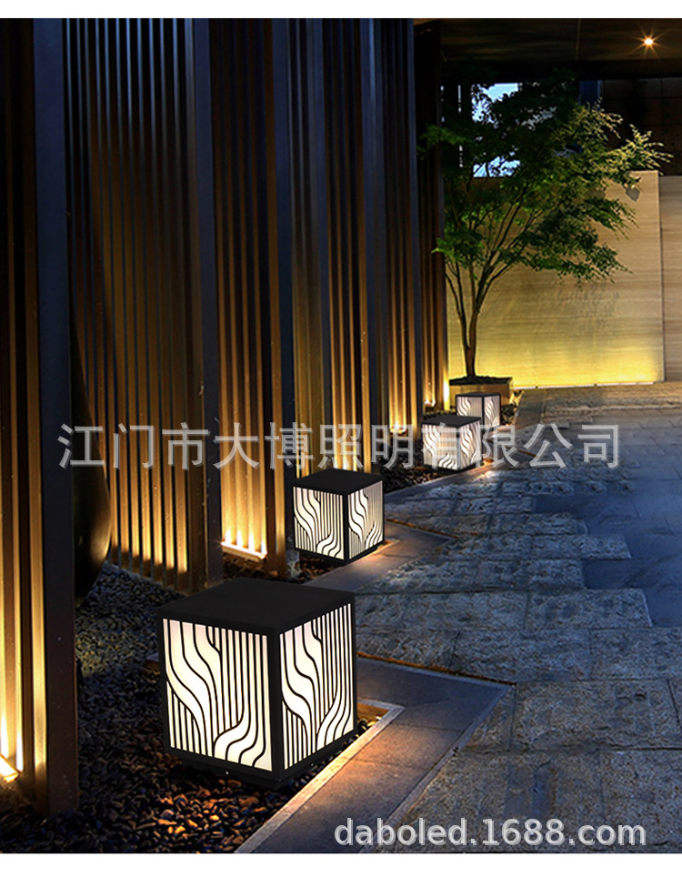 LED草坪燈現(xiàn)代中式簡(jiǎn)約條紋方形柱頭燈小區(qū)商業(yè)街防水廠家批發(fā)