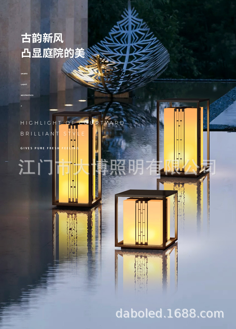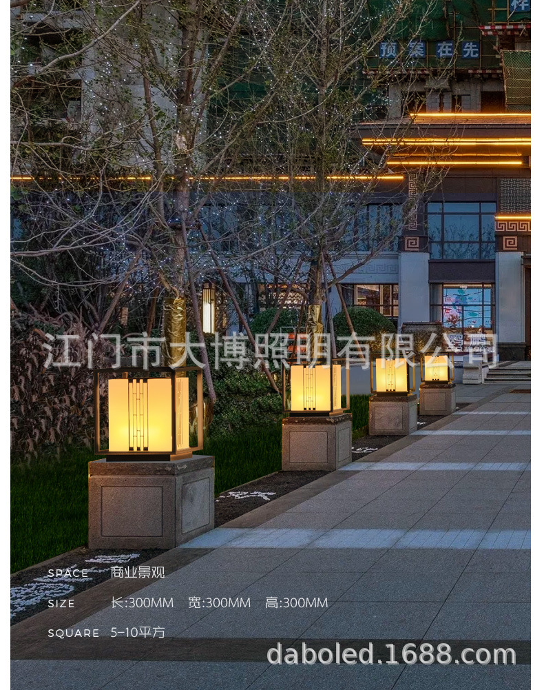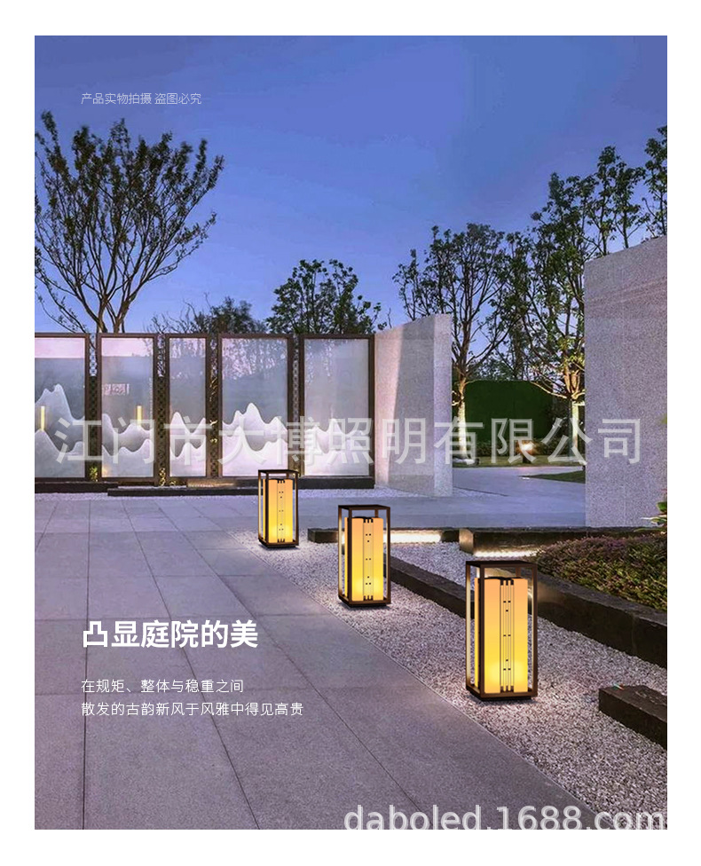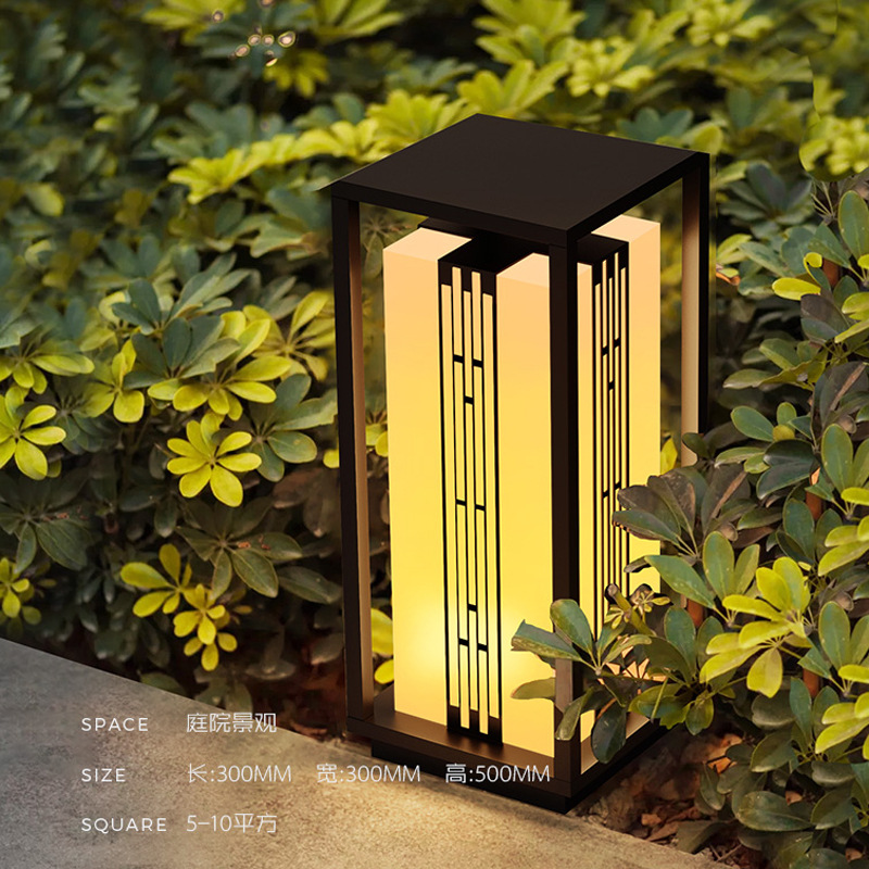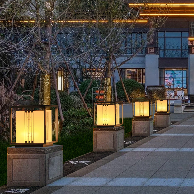 新中式柱頭燈拉絲電鍍不銹鋼門頭燈led方形落地柱式圍欄裝飾燈