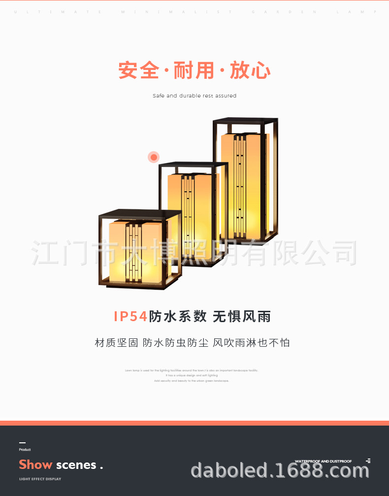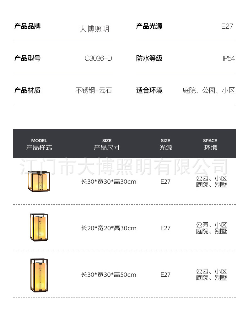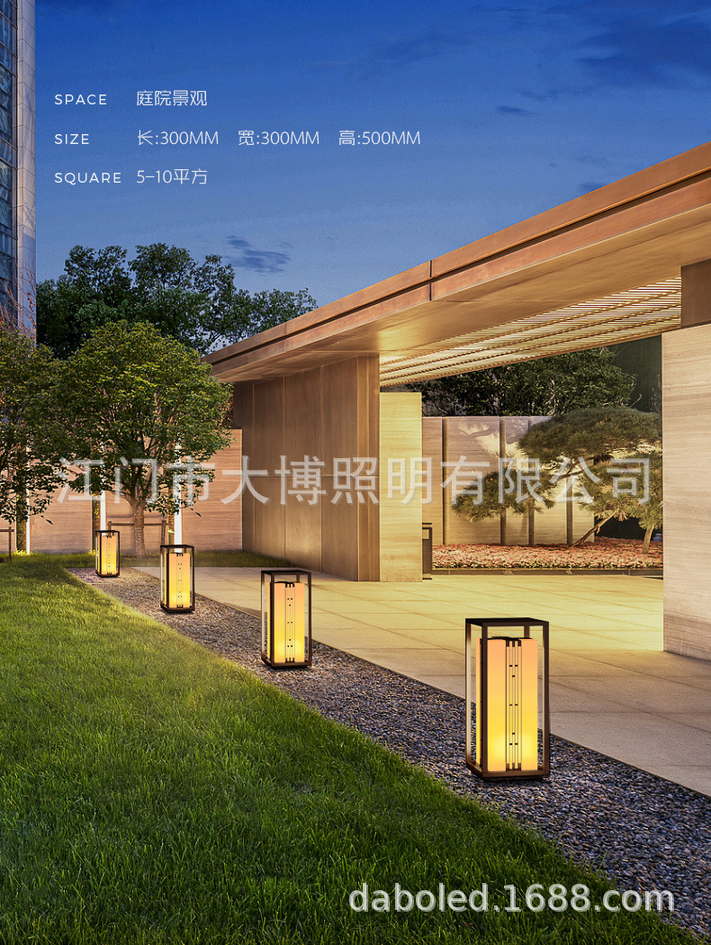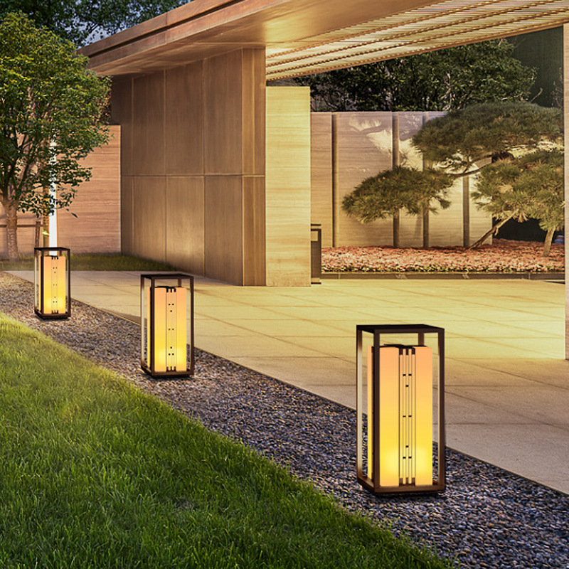 新中式柱頭燈拉絲電鍍不銹鋼門頭燈led方形落地柱式圍欄裝飾燈