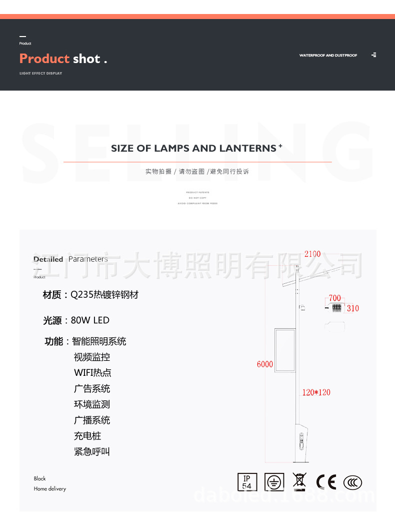 6米LED智能路燈高亮道路照明中式智慧燈桿公路智慧路燈廠家批發